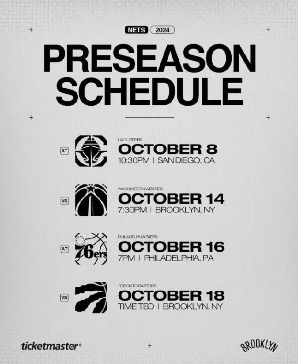 巅峰国际 恭候崔永熙上场!篮网新赛季季前赛赛程公布