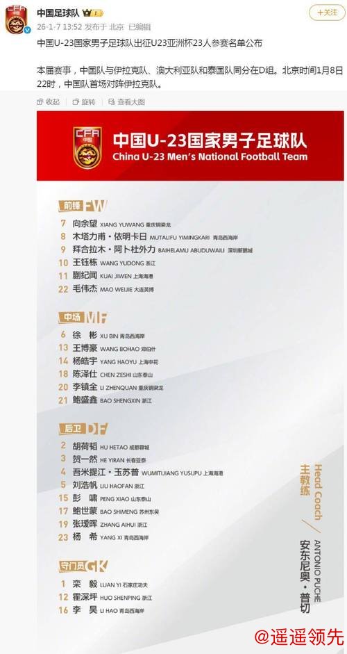 问鼎娱乐APP U23亚洲杯中国队23人名单公布