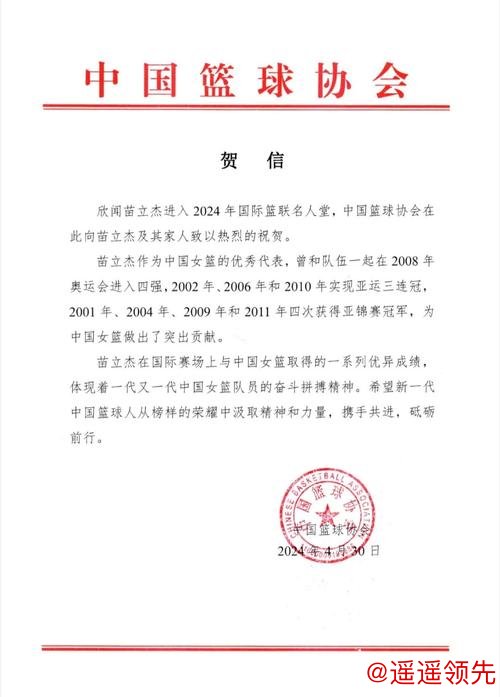 皇冠体育 苗立杰入选FIBA名人堂 中国篮协向她发出贺信