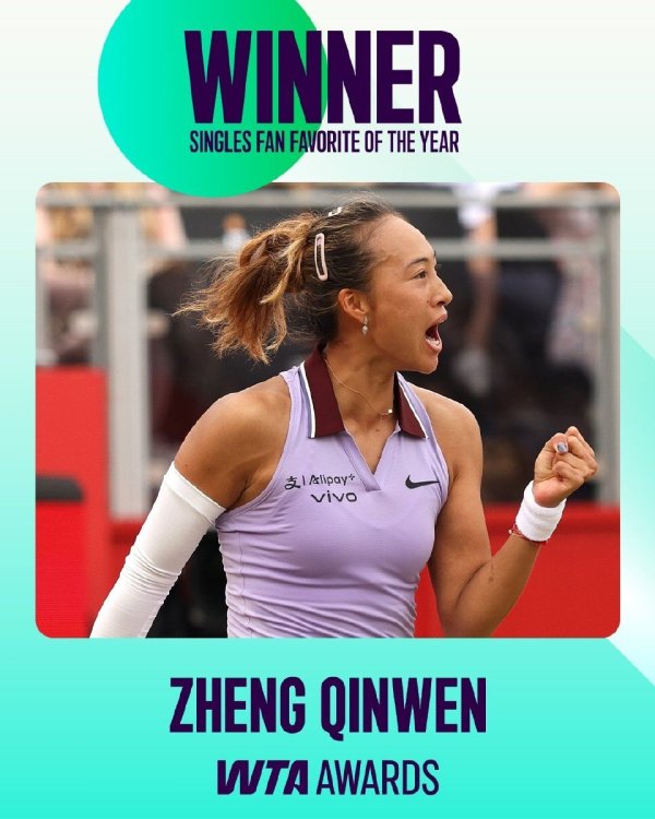 郑钦文当选WTA2025年度最受球迷宽宥单打球员