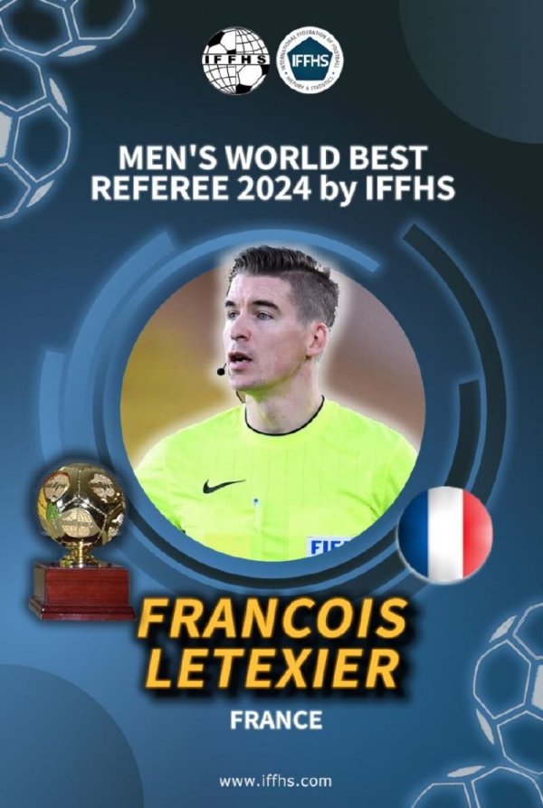 皇冠体育平台 35岁法国裁判莱特西尔当选IFFHS年度最佳裁判