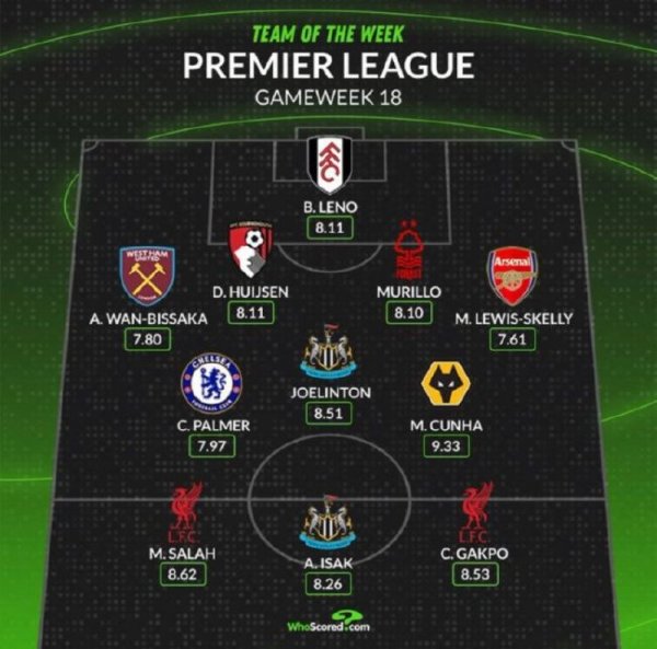 K彩平台最新登录 英超最佳阵:萨拉赫领衔,帕尔默&加克波在列