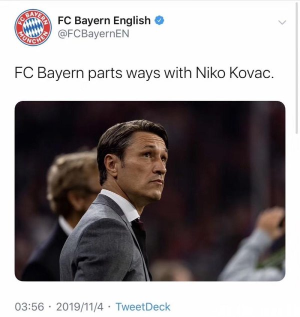 百家乐 拜仁官方宣布主教练科瓦奇下课 助教将暂时带队