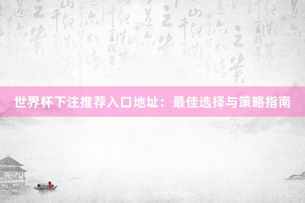 世界杯下注推荐入口地址:最佳选择与策略指南