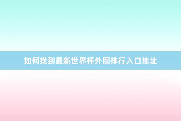 如何找到最新世界杯外围排行入口地址