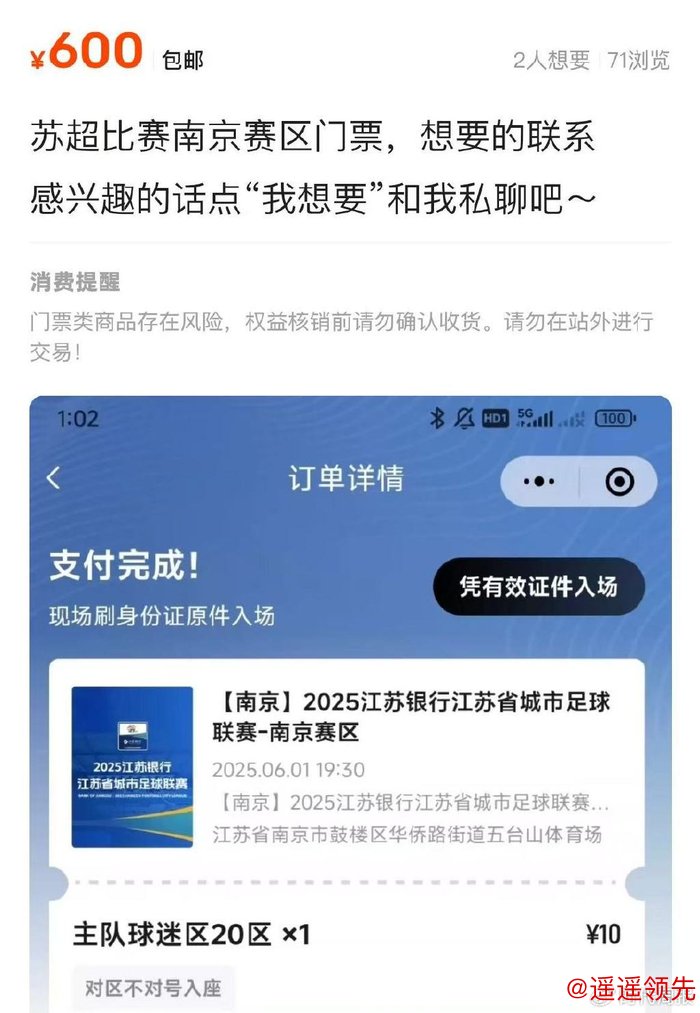 从网络流量到观众流量的转变是迅猛的。“苏超”第三轮,徐州临时将比赛场地换到当地最大的奥体中心,现场观赛人数超过22000;南京对阵无锡的焦点战门票一开票即售罄,黄牛叫价从80元直升到600元,而门票原价仅售10元。