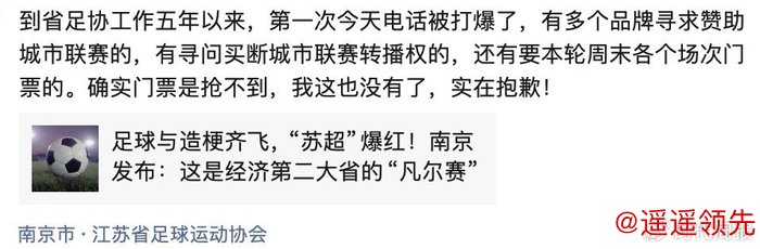 “到江苏省足协工作五年以来,第一次电话被打爆了”,他不得不发了个朋友圈:我这儿也没门票了,非常抱歉!